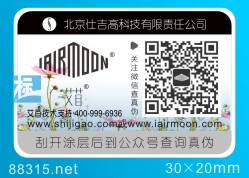 微信公眾號防偽是二維碼防偽重要形式,標(biāo)一防偽是集微信公眾號防偽系統(tǒng)開發(fā)及標(biāo)簽制作為一體的高科技公司,在此領(lǐng)域具有強大的實力與豐富的經(jīng)驗,部分客戶樣標(biāo)如下: