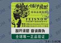 一般是將防偽標簽加貼在吊牌或合格證上,讓消費者在購買時能夠清晰可見。目前廣泛使用的服裝防偽標簽類型有刮開式數碼防偽標簽、揭開式數碼防偽標簽、以及較高檔激光隱密型揭開式防偽標簽。具體案例如下: