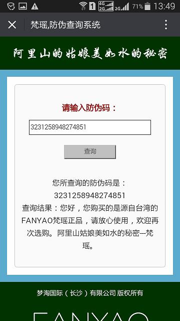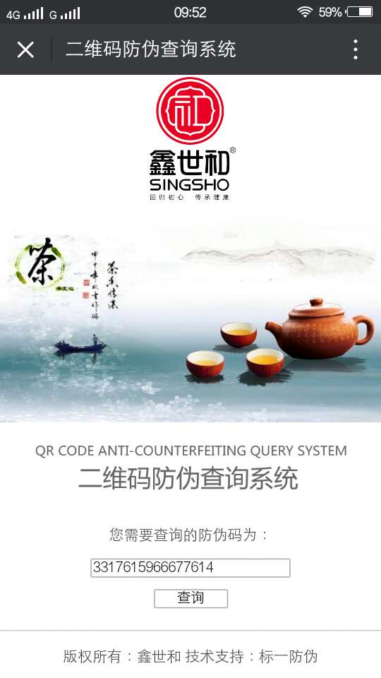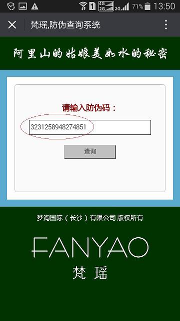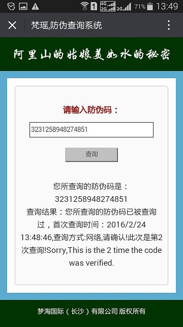 進入個性化的查詢頁面,輸入標簽上的16位防偽密碼,點查詢