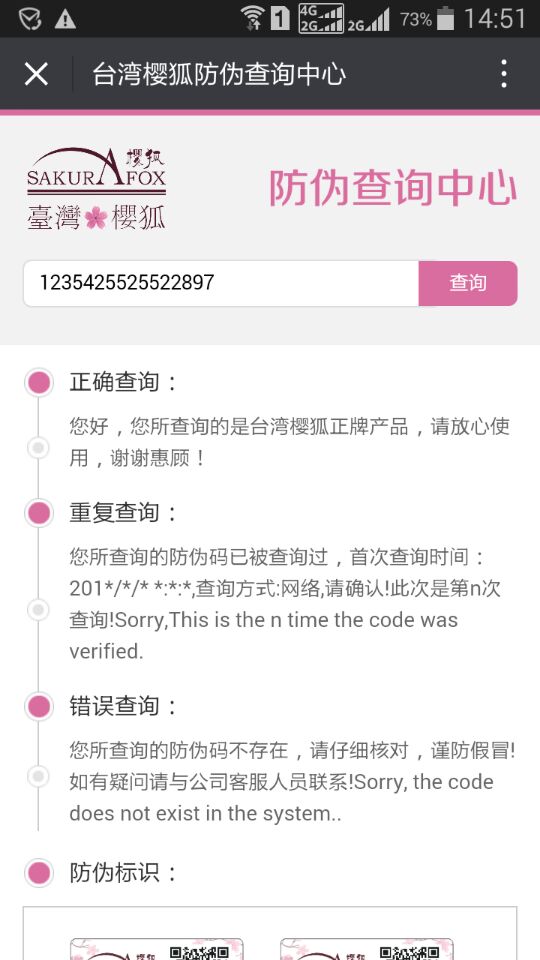 目前,應用企業微信公眾號或訂閱號進行防偽查詢是非常普遍的防偽方式,為了更好的展現企業形象,提升客戶的信任度,標一防偽為您量身定制個性化的查詢頁面,即相應的查詢頁面可以根據您的要求進行內容和版式定制。具體案例如下: