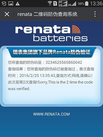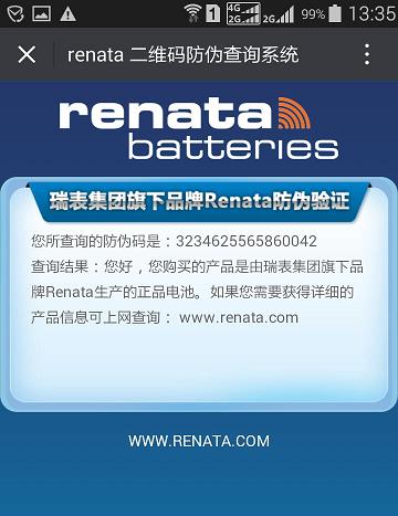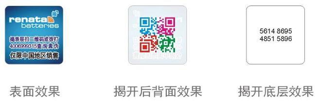 以下是瑞士鐘表集團旗下電池品牌RENATA使用的我公司開發的二維碼防偽標簽。