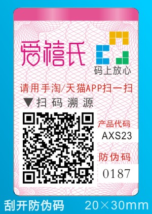 當前位置:首頁防偽產品二維碼微信防偽 > 阿里健康,碼上放心追溯平臺防偽標簽覆碼印刷制作