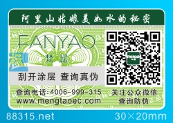 此類防偽標簽上相應的二維碼都是變化的,而且是無序、不重復,與標簽內含的數字密碼一一對應,標簽只能查詢一次,歡迎點擊體驗:二維碼防偽查詢
